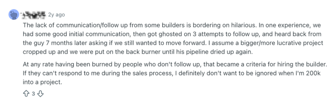 Repeated non response becomes a signal. Buyers stop viewing the builder as an option and start viewing them as a risk.